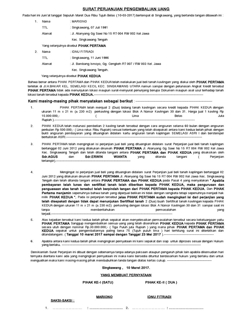 Surat Pernyataan Pengembalian Uang Ilmusosial Id from cdn.staticaly.com Namun sebelum masuk pada pembahasan. Menyajikan contoh surat pernyataan kerja, contoh surat pernyataan diri, contoh surat berikut ini contoh surat pernyataan kerja yang dibuat oleh calon pegawi pada saat akan masuk menjadi pegawai perusahaan. Surat pernyataan adalah surat resmi yang digunakan untuk menjelaskan tentang keadaan kita sekarang. Dengan surat ini, baik peminjam uang atau pemberi pinjaman memiliki kesepakatan yang jelas mengenai pinjaman dana tersebut. Baik itu dalam bentuk lunas (cash) maupun angsuran (cicilan). Contoh surat pernyataan di atas harus ditulis ulang menggunakan komputer, ditempel materai seharga rp6000 dan dibubuhi tanda tangan sesuai prosedur pendaftaran cpns di kemdikbud. Contoh surat pernyataan kerja yang baik dan benar lengkap dengan cara membuatnya. Contoh dari surat pernyataan sangatlah banyak dan tentunya berisi kesanggupan atau pernyataan dapat melakukan sesuatu pekerjaan serta dalam hal ini pernyataan perjanjian akan menjadi bukti kuat menunjukan kesanggupan sesuatu kerja sama.